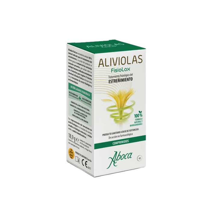 Aliviolas FisioLax es un producto indicado para el tratamiento del estreñimiento. La acción del producto se obtiene gracias al conjunto de las sustancias presentes, que actúan sobre las múltiples funciones utilizadas normalmente por el intestino para regular el tránsito intestinal.